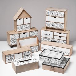 Acrescente personalidade à sua casa com Guarda-Joias ONE LINE Branco Preto Natural Madeira MDF 39 x 10 x 11 cm