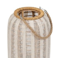 Transforme a Sua Casa com Lanterna Bege Natural Bambu Cristal 25 x 25 x 45 cm.