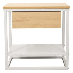 Mesa Auxiliar Metal Branco Madeira Natural 50x35x50cm, Madeira: Dm