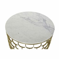 Se deseja adicionar um toque de originalidade à sua casa, faça isso com o Mesa de apoio Dourado Branco Mármore Ferro (81 x 81 x 42 cm).