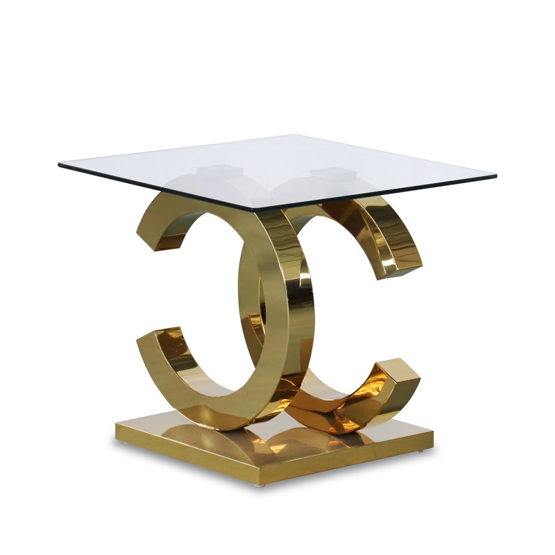 Acrescente Mobiliário de qualidade e design com Mesa De Apoio Em Vidro/aço Dourado Brilhante +91187+91188 55x55x50cm, Vidro Temperado:8mm