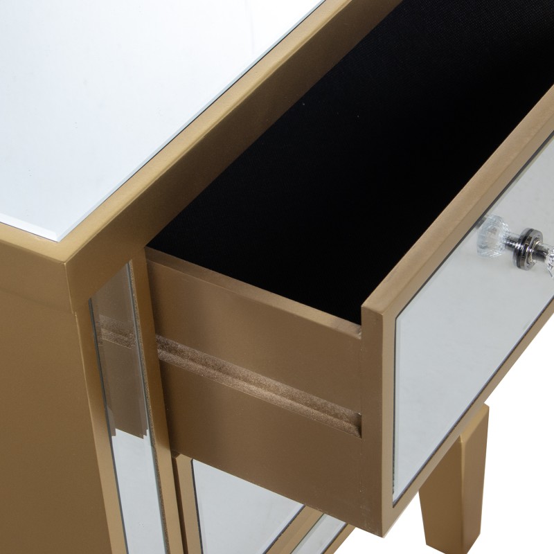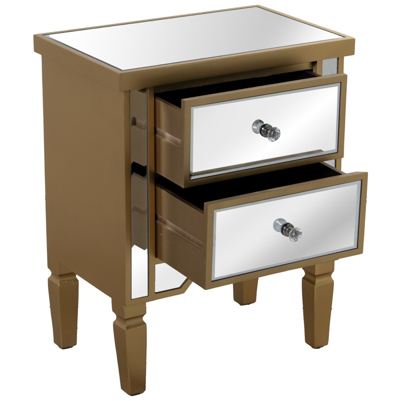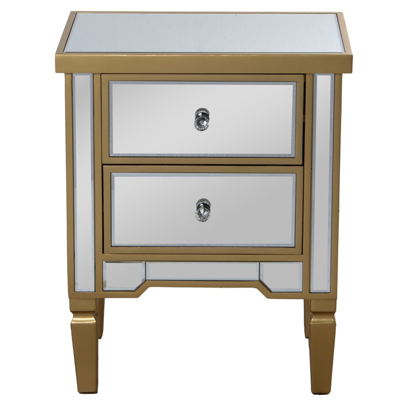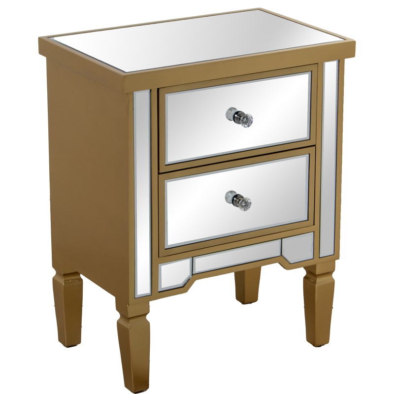 Mesa De Cabeceira Madeira/espelho Dourada com 2 Gavetas 49x33x62cm