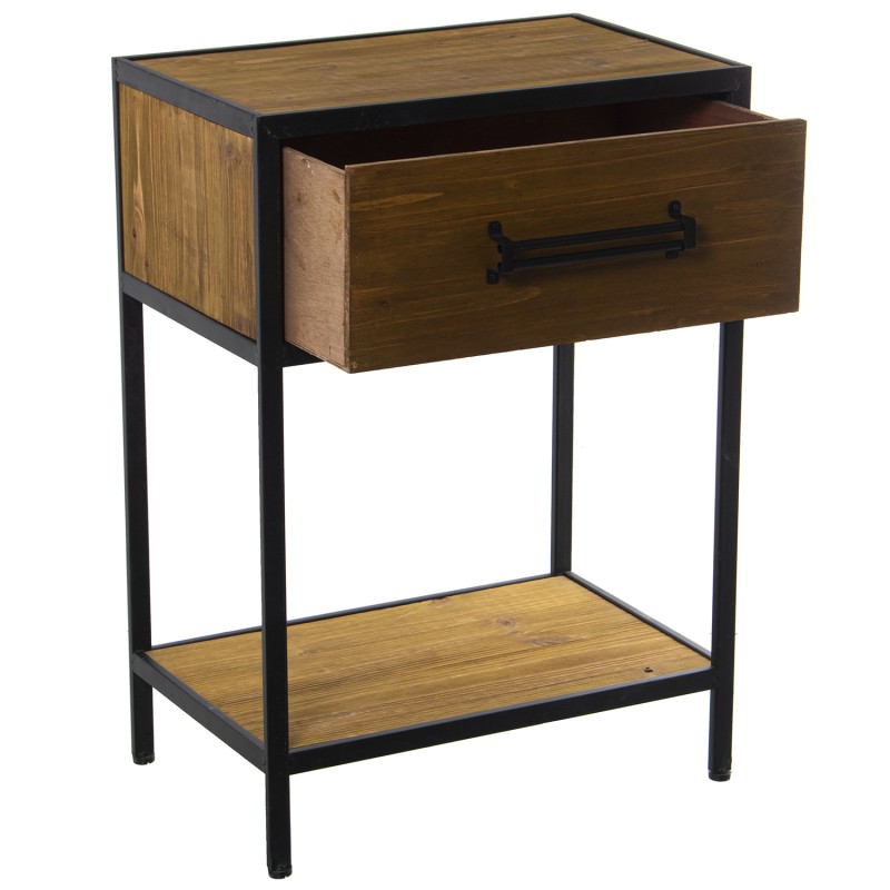 Mesa de Cabeceira Madeira Metal 47x30x65cm Abeto+contrachapad