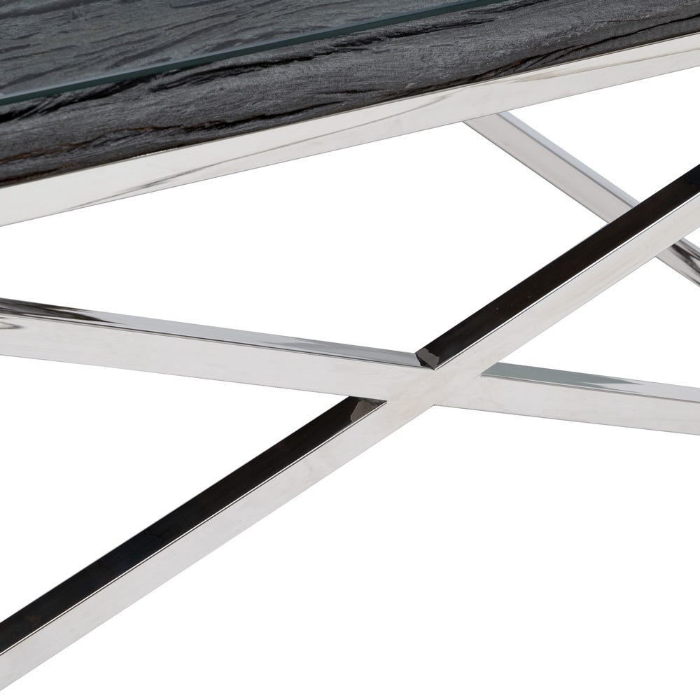 Material: madeira, vidro, aço inoxidável. Espessura superior (madeira + vidro): 6cm.