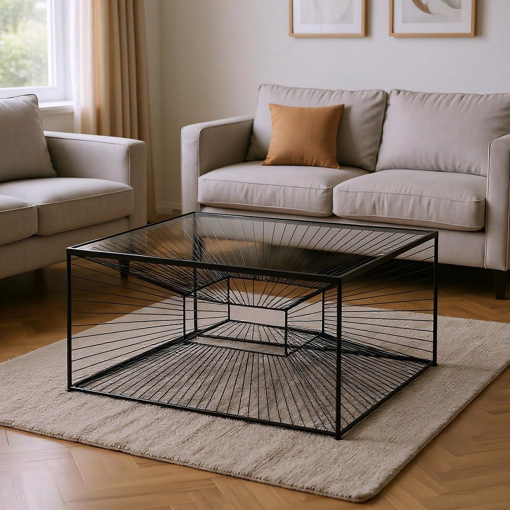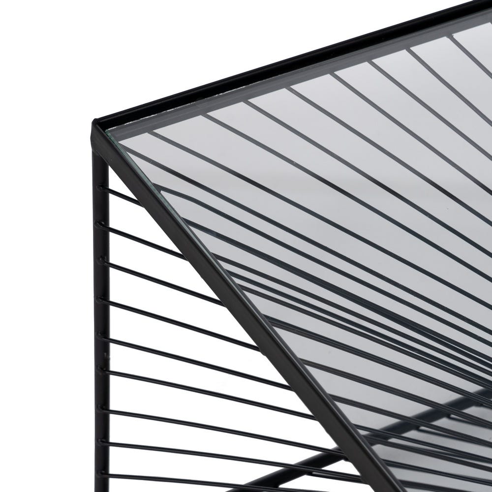 Mesa De Cafe Preto Metal-Cristal 80,50 X 80,50 X 38 Cm