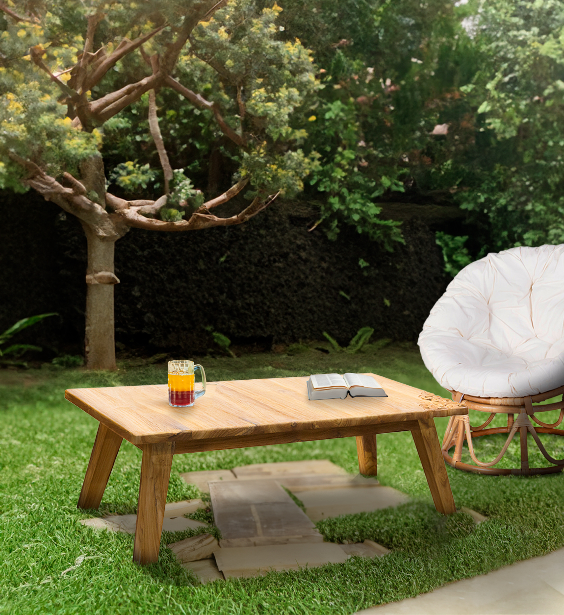 Acrescente personalidade à sua casa com Mesa de centro de teca com entalhe 120 x 60 x 40. Este será certamente um mobiliário para a vida toda.