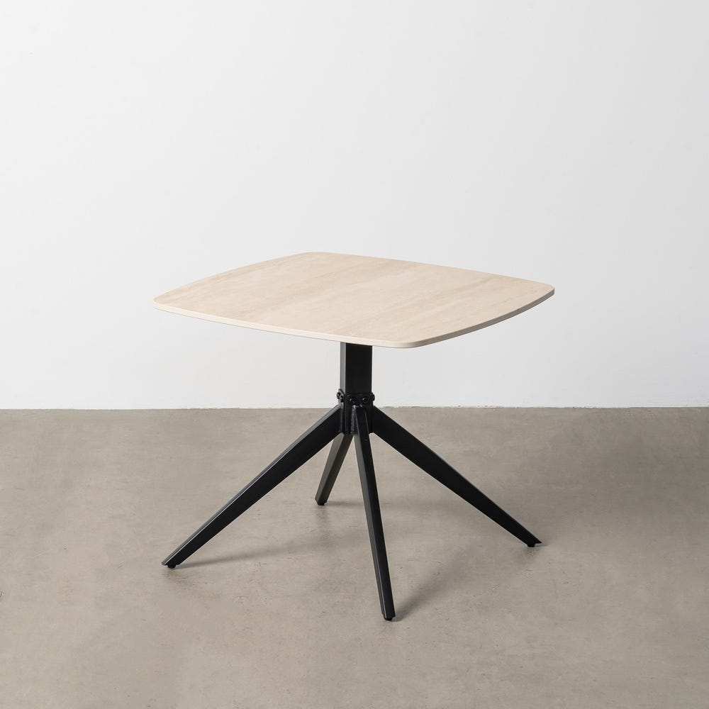 Material: pedra sinterizada imitando mármore travertino – metal. Pés: ferro (preto). Requer montagem.