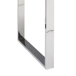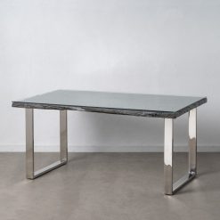 Material: Madeira, vidro, aço inoxidável. Espessura (madeira + vidro): 6 cm. Distância entre pernas: 132 cm.