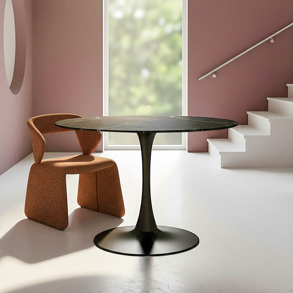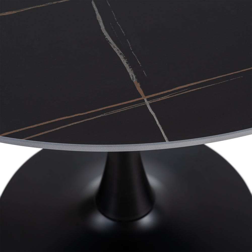 Material: Pedra sinterizada – metal (ferro). Diâmetro da base: 60 cm. Espessura do tampo: 1,1 cm. Requer montagem.