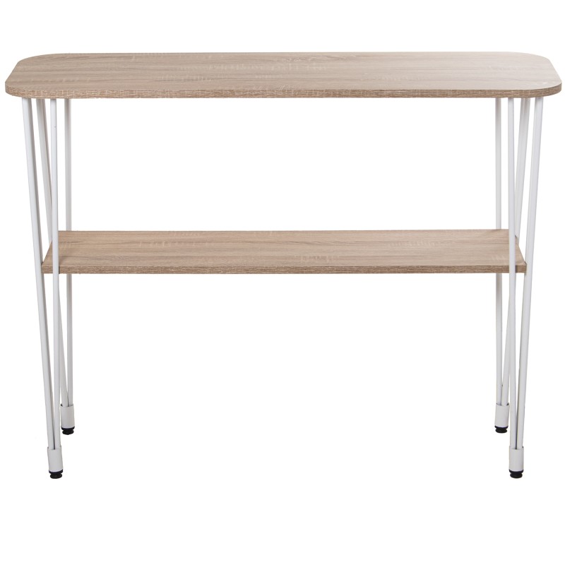 Mesa Entrada Madeira Cl. Carvalho +72290 Pés Metal Branco, Mon 120x40x91cm Balda:106x28x1,8c