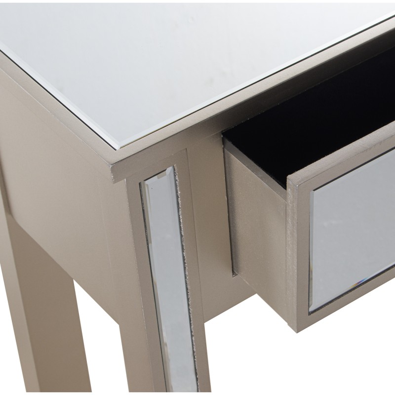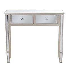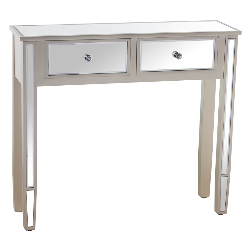 Mesa Entrada Madeira/espelhos Champagne com 2 Gavetas 90x25x80cm
