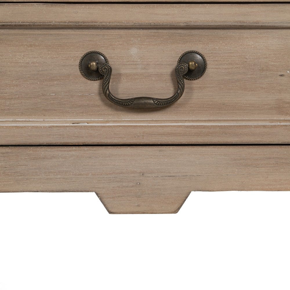 Material: madeira de abeto – Dm. Altura da perna: 31cm. Tamanho da gaveta: 37,5×13,5cm.