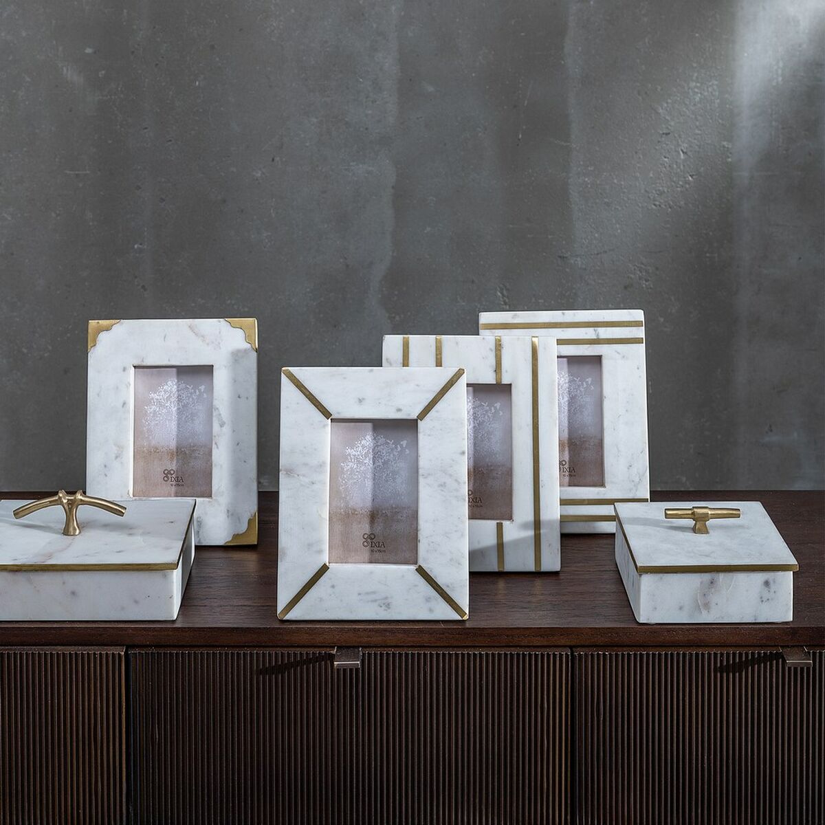 Moldura de Fotos Branco Dourado Cobre Mármore 10 x 15 cm 19 x 1,5 x 24 cm