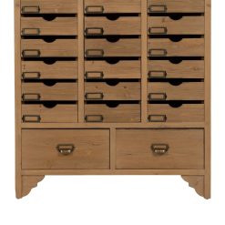 Material: estrutura principal: madeira de abeto – DM. Altura das pernas: 10 cm. Dimensões das gavetas: 30 de 24,5 x 8 – 2 de 38,5 x 17,5 cm.