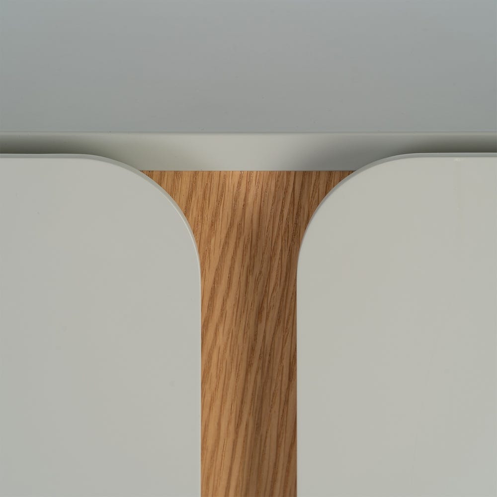 Material: MDF, pés em madeira de carvalho. Portas: 43×33,5cm. Altura dos pés: 17cm. Móvel desmontado, requer montagem completa.