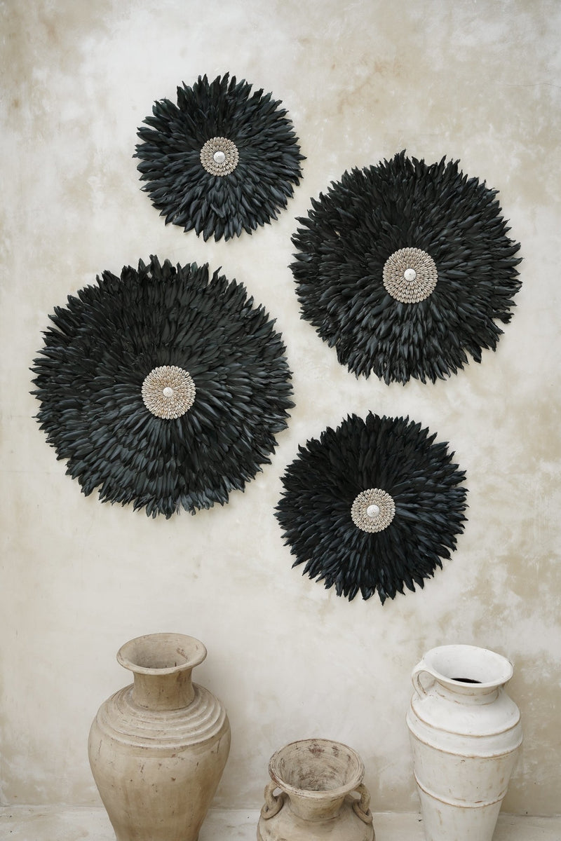 O Juju é uma peça única e bonita de arte de parede e um verdadeiro must-have boêmio. Essas belezas são feitas à mão, e é isso que as torna 100% únicas. As penas são de galinhas e normalmente seriam jogadas fora, mas as reutilizamos para que elas tenham uma segunda vida linda. Temos diferentes tamanhos disponíveis, mas o mais bonito é combinar os quatro tamanhos para obter o efeito “uau” completo para o interior da sua casa. Já tem um lugar em mente para pendurar essas belezas? Dê à sua casa umas vibes de férias com esses penduricalhos de parede exclusivos! Você não vai se arrepender!
