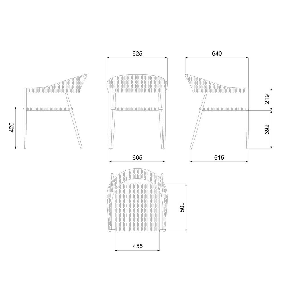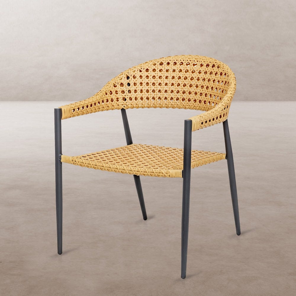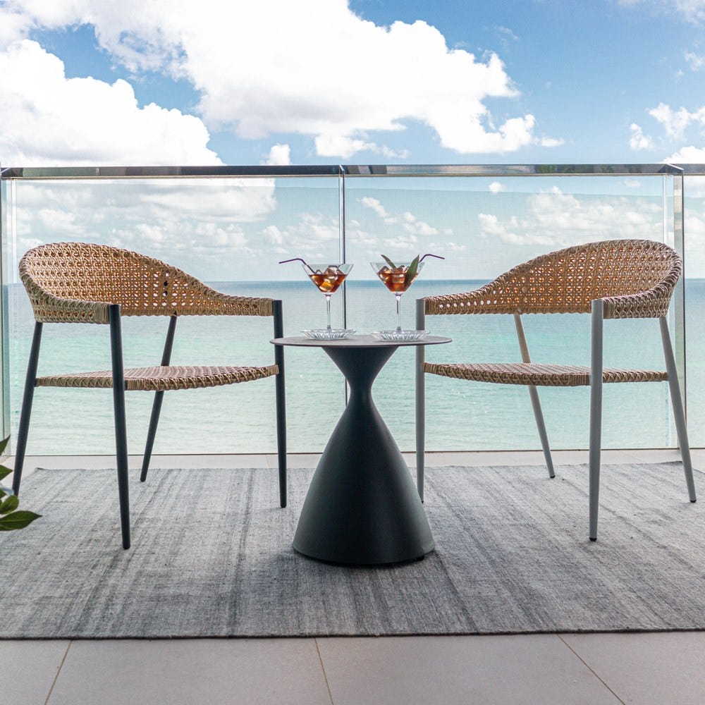 Estrutura em alumínio na cor grafite. Trançada com rattan sintético na cor natural.