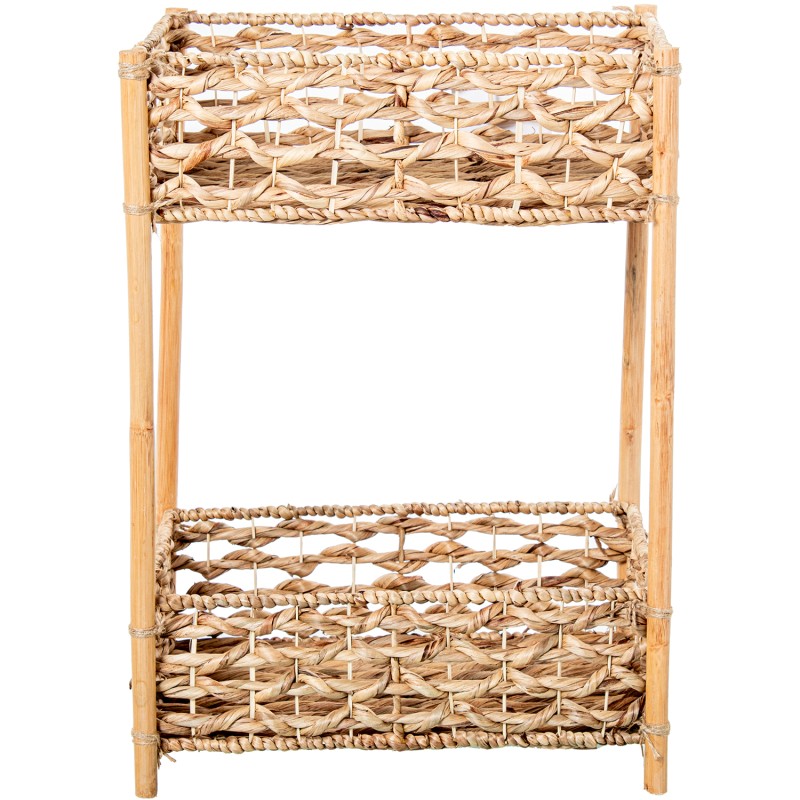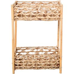 Acrescente Prateleira De Arrumação Com 2 Cestos De Jacinto De Água, Pés De Madeira 44x31x60cm Cesto:42x27x13cm