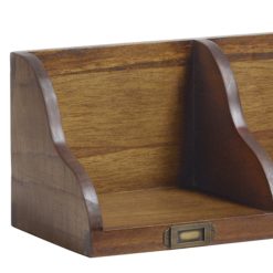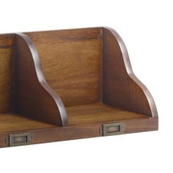 Prateleira incluída na coleção Star. É feito à mão com madeira maciça mindi e acessórios de identificação em bronze. Possui 3 compartimentos e sistema de fixação à parede. Sem necessidade de montagem.