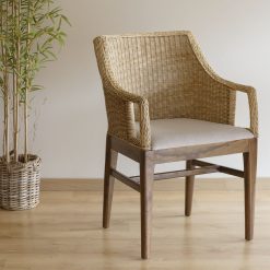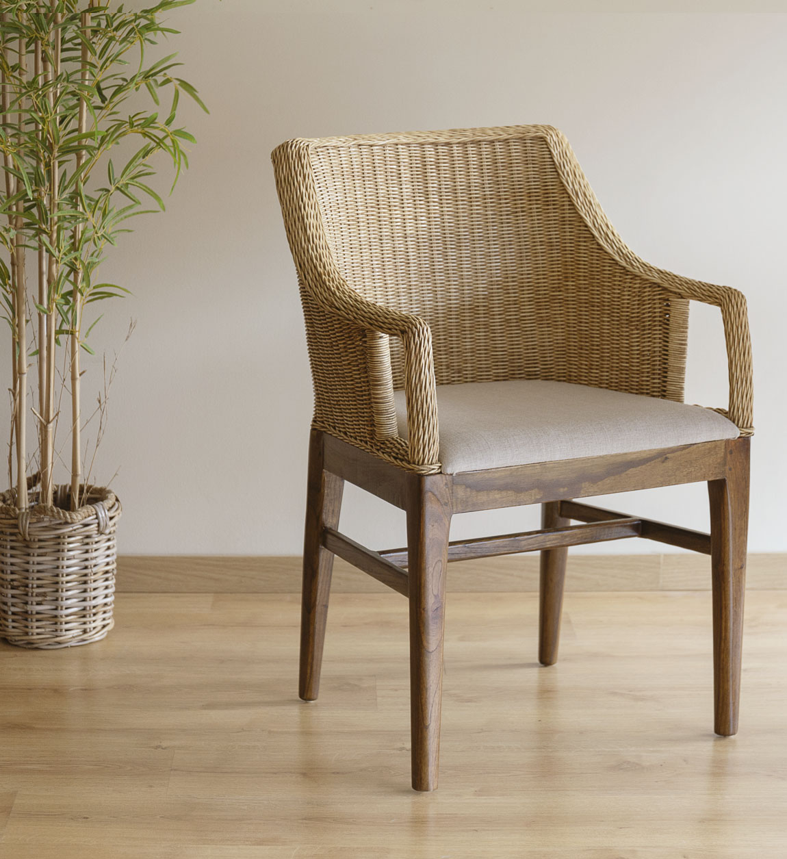 RATTAN – Poltrona de mogno, vime e tecido 58 x 60 x 88