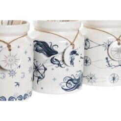 Adicione personalidade à sua mesa e cozinha com Recipiente para Utensílios de Cozinha Azul Metal Branco Dolomite Madeira MDF 12 x 12 x 25 cm (3 Unidades)