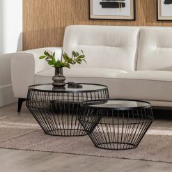 Acrescente personalidade à sua casa com S/2 Mesa De Cafe Preto Metal-Cristal 73 X 73 X 40 Cm