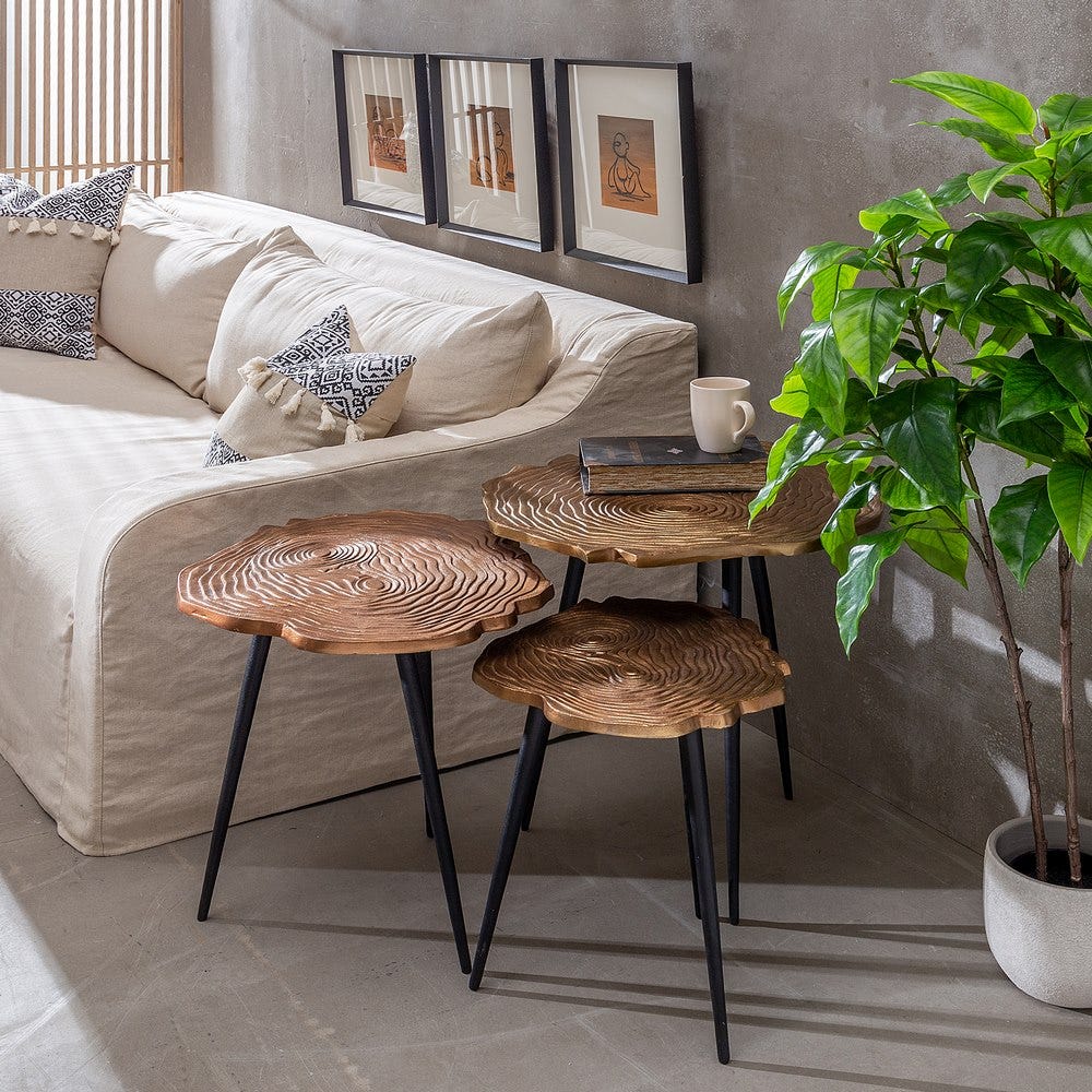 Acrescente personalidade à sua casa com S/3 Mesa Auxiliar Preto-Cobre Aluminio 60 X 60 X 56 Cm
