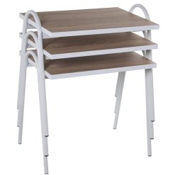 Acrescente Mobiliário de qualidade e design com Set 3 Mesas Aux. Pés Brancos Sobre Carvalho 38x48x41cm Cada Mesa