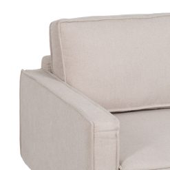 Tecido: 94% poliéster – 6% Nylon Pernas metálicas. Enchimento: algodão. Materiais: Madeira de eucalipto. Medidas do assento: 72x78x14 cm Medidas do encosto: 70x20x47cm. Altura do assento: 47cm. Largura do braço: 10cm. Altura do braço: 63cm. Altura da perna 17cm. Largura do assento: 140cm. Profundidade do assento: 62cm. Altura do encosto: 47cm. Pernas para montar. Almofadas com capas removíveis com zíper para lavagem. Instruções de lavagem: *pode ser lavado a seco. * Para manchas de água, esfregue com um pano limpo ou seque. *Para outros tipos de manchas, esfregue com pano e detergente neutro, não use cloro. Peso máximo suportado por assento: 150kg. Cumpre a norma UNE-EN 12520:2015.