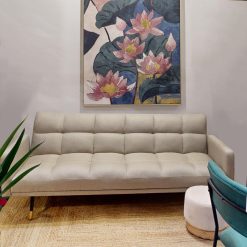 Acrescente Mobiliário de qualidade e design com Sofá Cama 3 Lugares Poliéster Bege com Pés Metal Negro/oro 193x83x75cm Cama:177x96x17cm