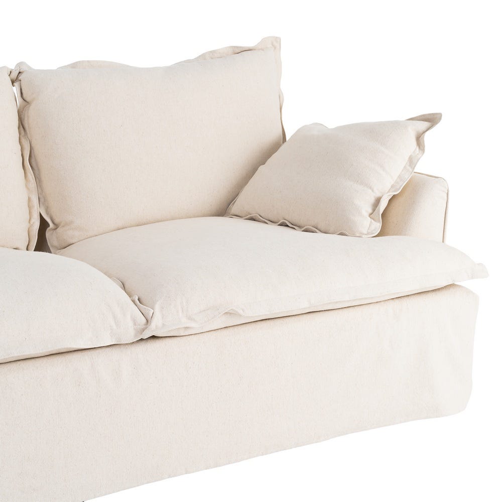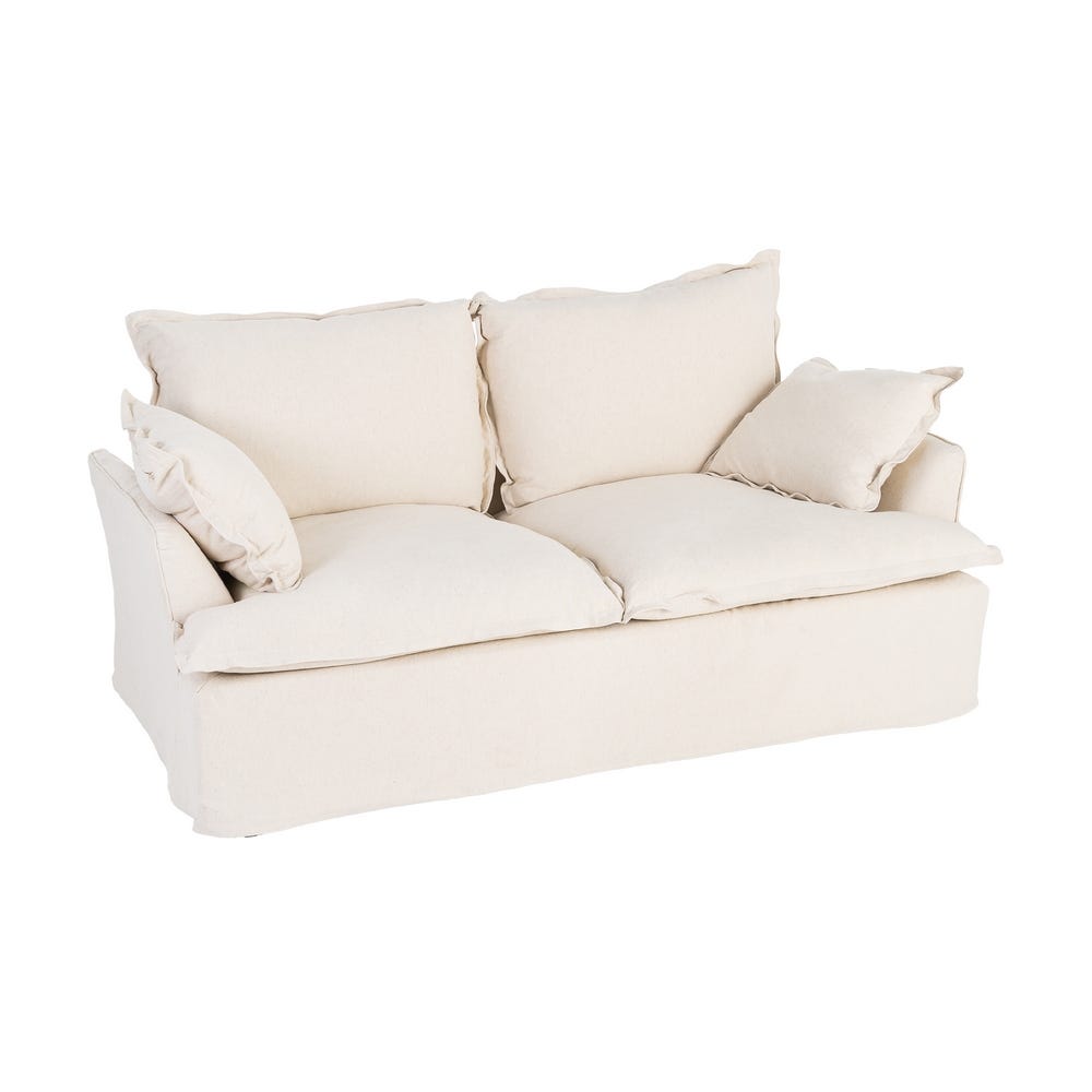 Sofá de 2 lugares bege em madeira/tecido, 200 x 109 x 90 cm