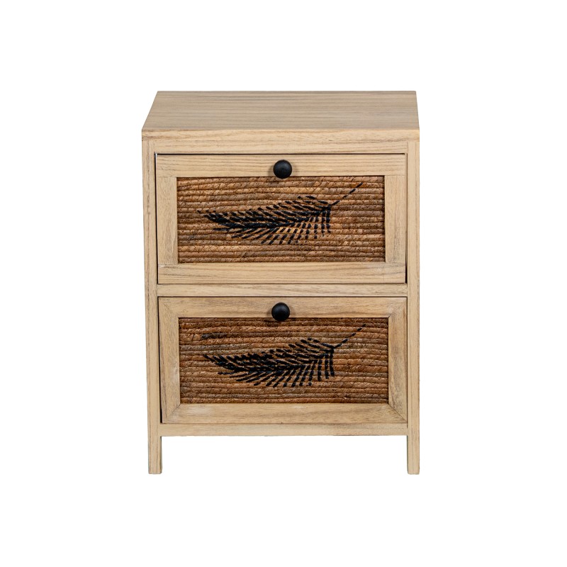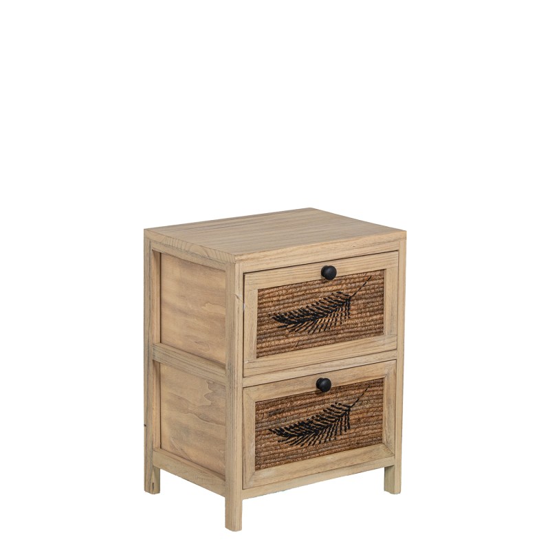 Suporte De Madeira com 2 Gavetas Em Vime 40x30x52cm, Gavetas:36x28x19cm, Madeira: Paulownia
