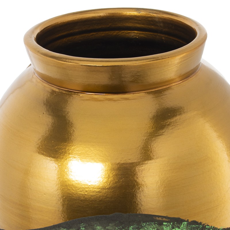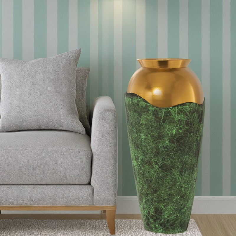 Vaso Cerâmica 60cm Verde/Ouro 25x60cm, Boca:14cm