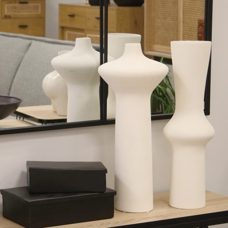 Vaso Cerâmica Abstracto Crudo Mate 20x50cm Base:11cm
