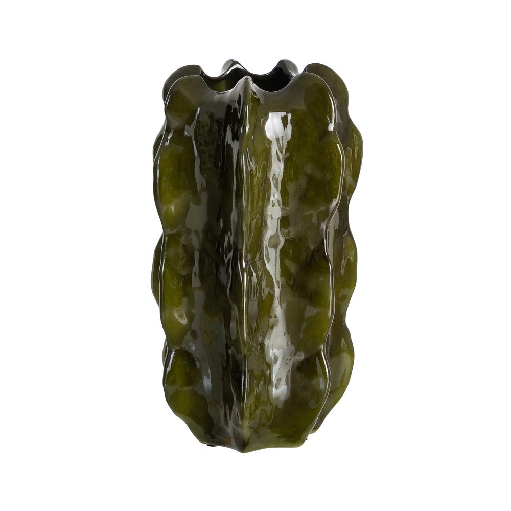 Vaso decorativo de cerâmica verde, 18 x 18 x 30 cm