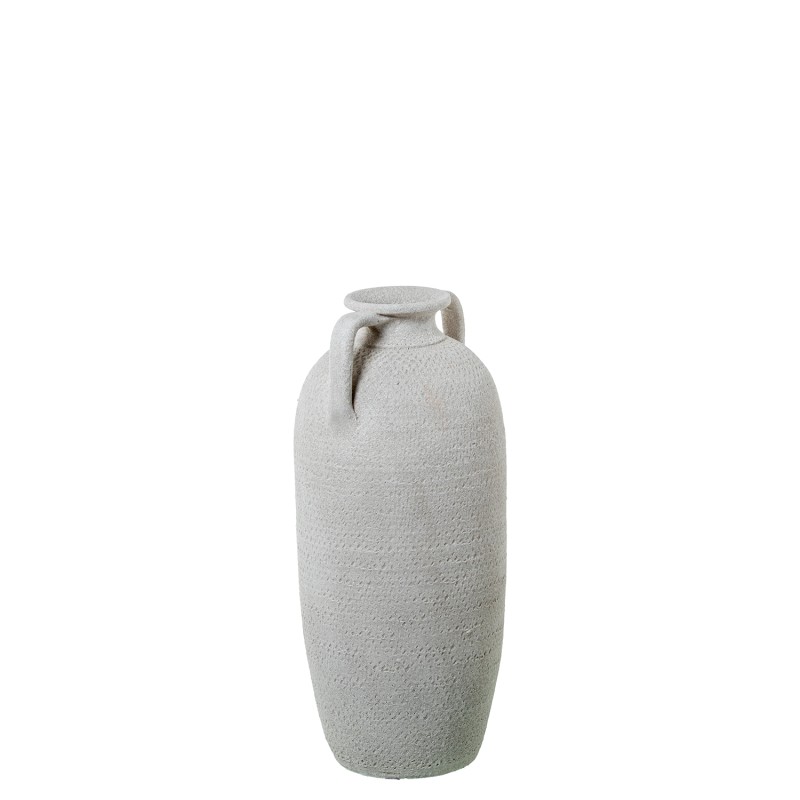 Vaso Em Cerâmica Com Pegas 50cm Branco Areia 19x50cm