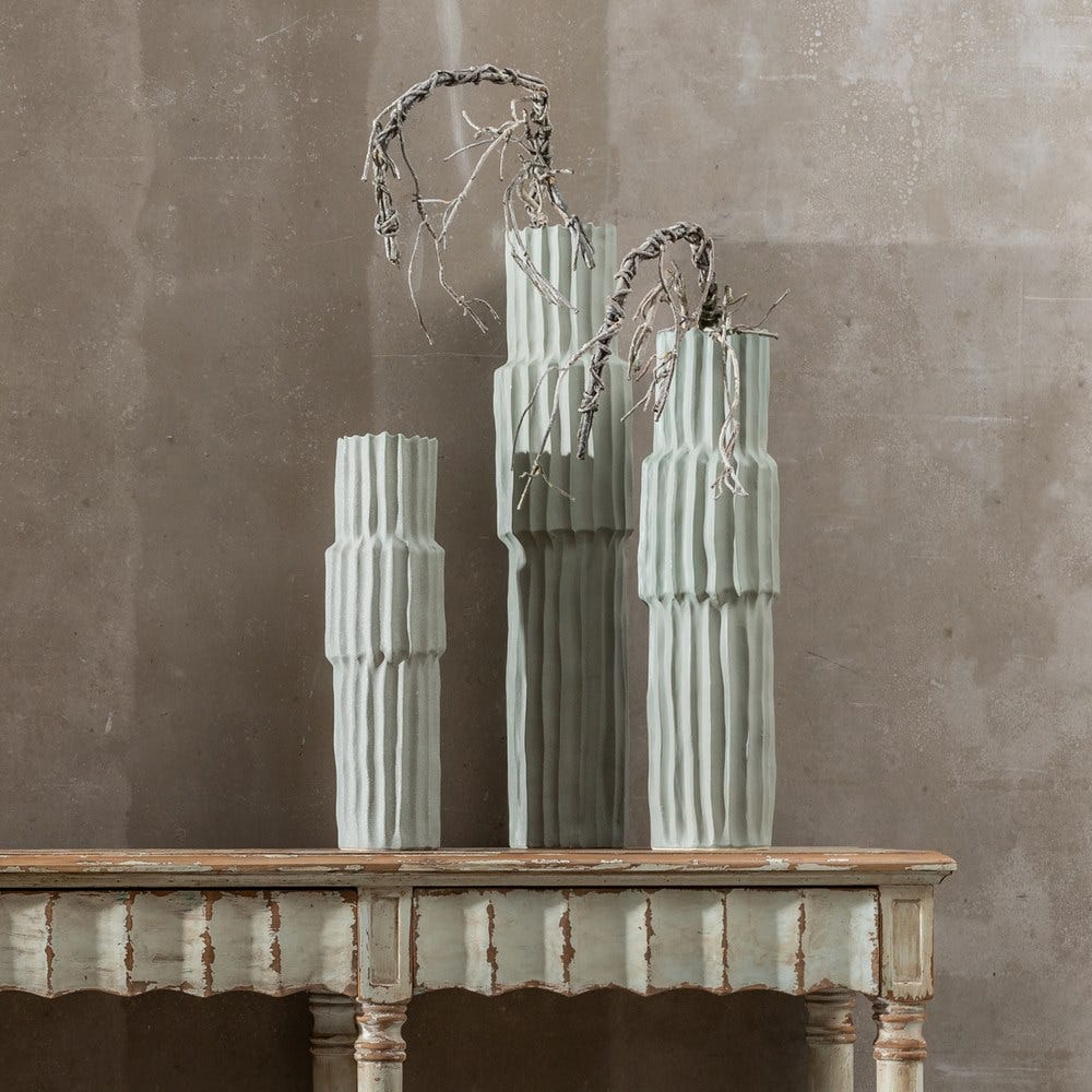 Vaso Verde Cerâmica Decoração 20,50 X 20,50 X 92 Cm